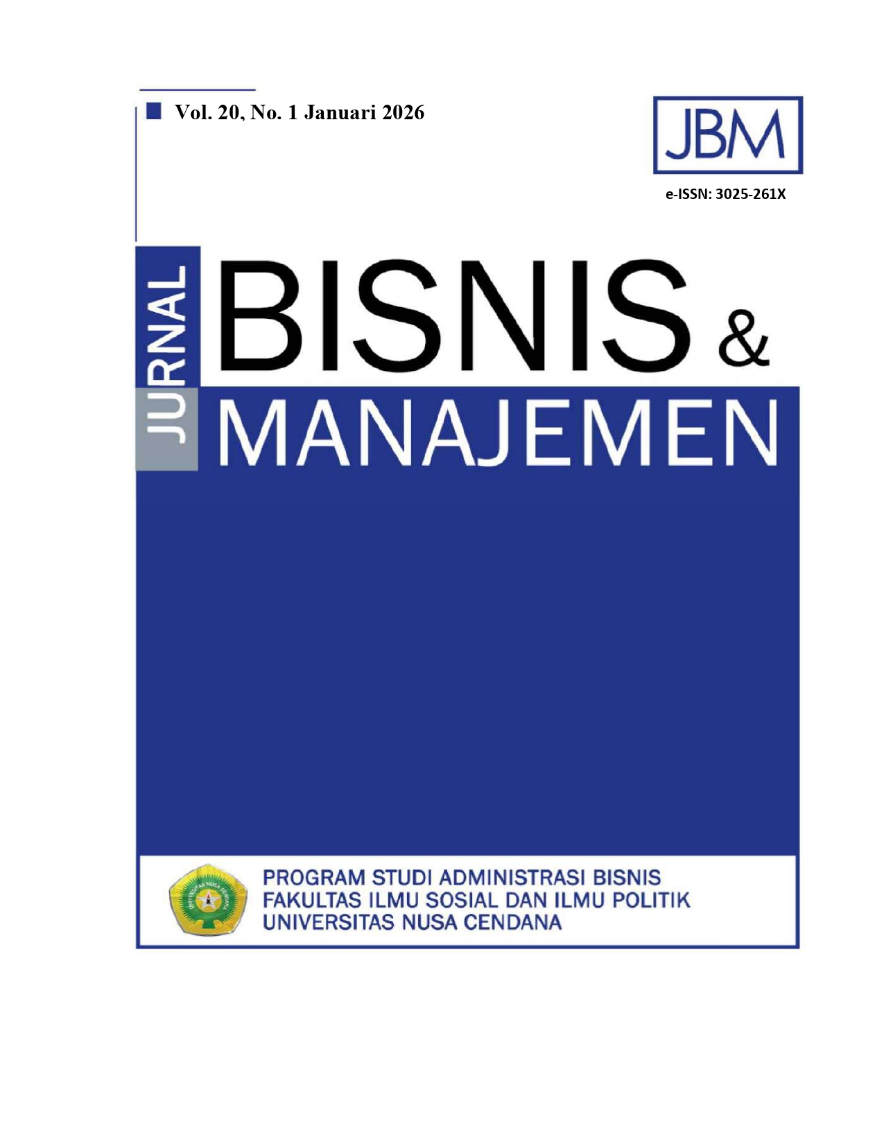 JB&M Administras Bisnis Fakultas Ilmu Sosial dan Ilmu Politik Universitas Nusa Cendana pada Volume 20, Nomor 1 Januari 2026 masih tetap mengambil artikel dari hasil penelitian skripsi mahasiswa Adaministrasi Bisnis.